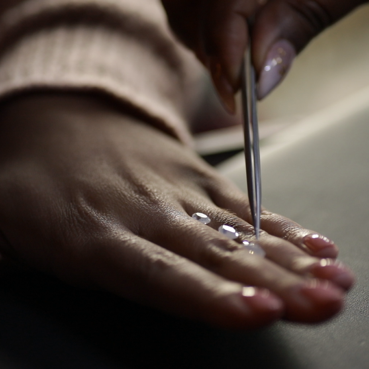 Now that we have the sketch finalized, it’s time to select a center stone and any side stones for the ring. There are over 20 metrics used to evaluate stones from all over the world, and we’re here to simplify and explain those metrics. Our goal is to arrive at an intersection of maximum size and brilliance while keeping within your allocated budget.