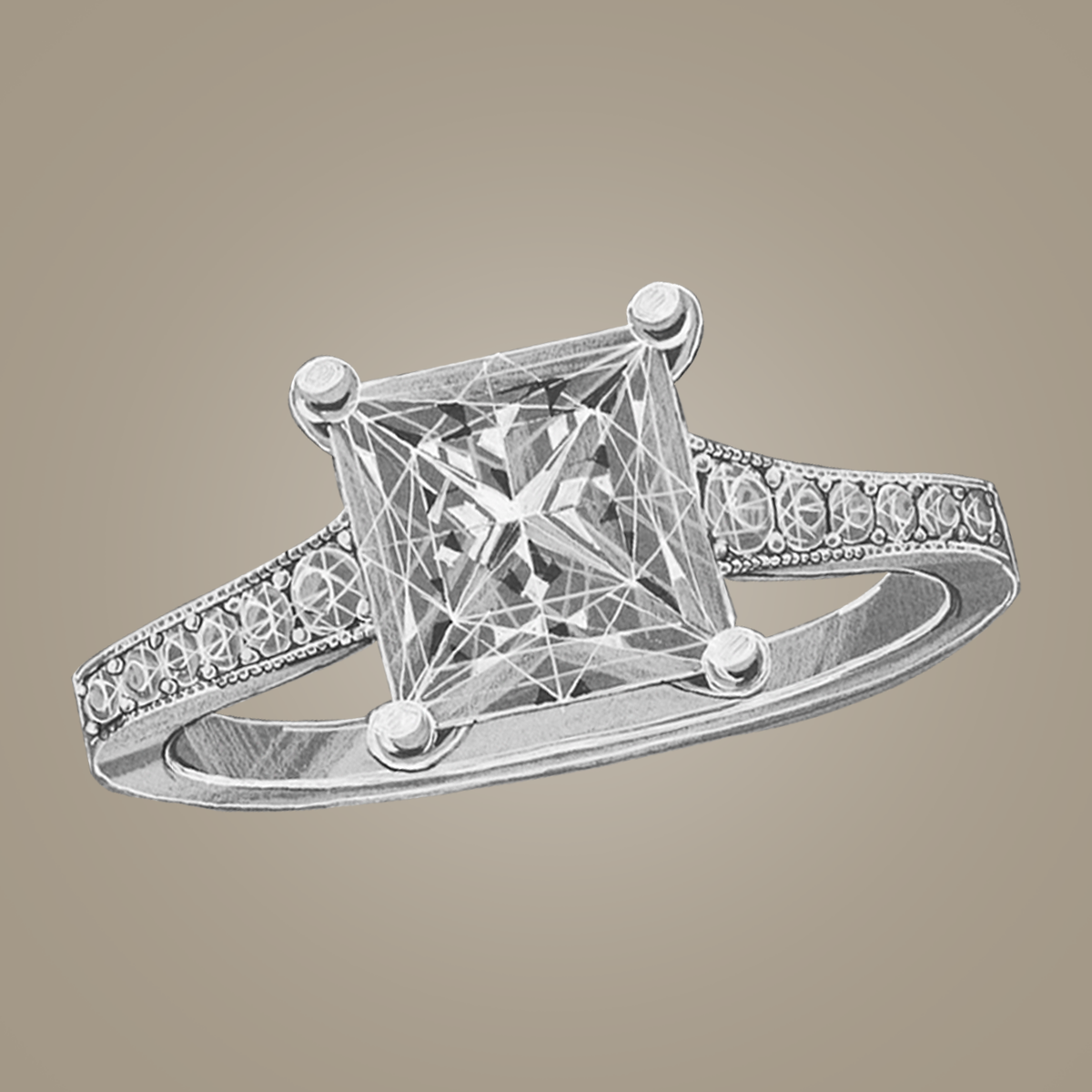Once you have shared your thoughts and ideas on what you want the ring to look like, we will develop a mood board and several hand-sketched designs for your review. This step allows for several rounds of comments and edits, until you’re confident and happy with the final design.